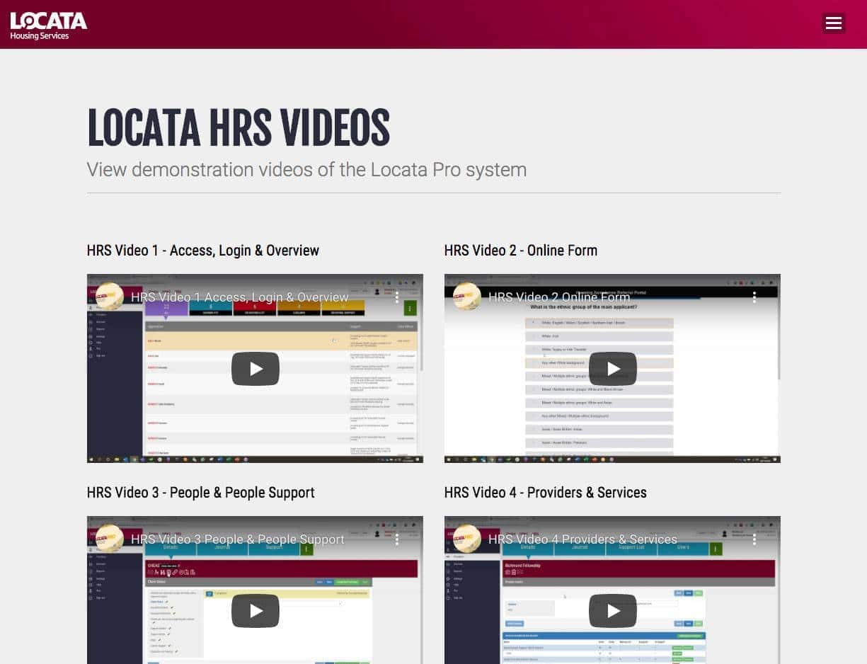 Locata has created eight videos demonstrating how our Housing Related Support (HRS) module works.