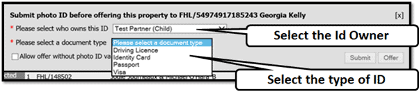 Now that we have uploaded Proofs of ID on the journal, officers can use them in the process. When the “offer” button is clicked a pop up will display asking the officer to select the household member and type of ID.