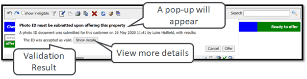 The Proof of ID & Validation process allows officers to check the customers ID at point of offer.