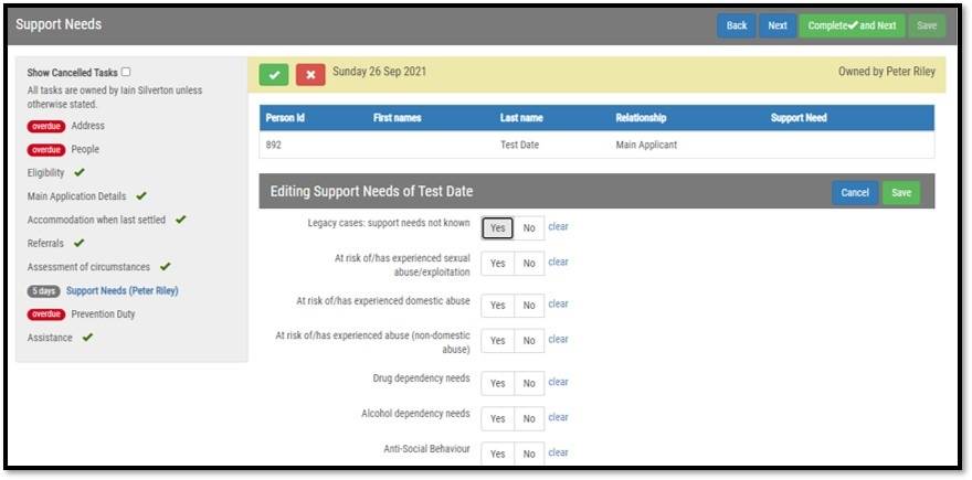 A new task will be added to HPA2 after the “Assessment of Circumstances” where the Support Needs from the People task can be amended and/or reviewed. The support needs will also still be accessible under the “People” task.